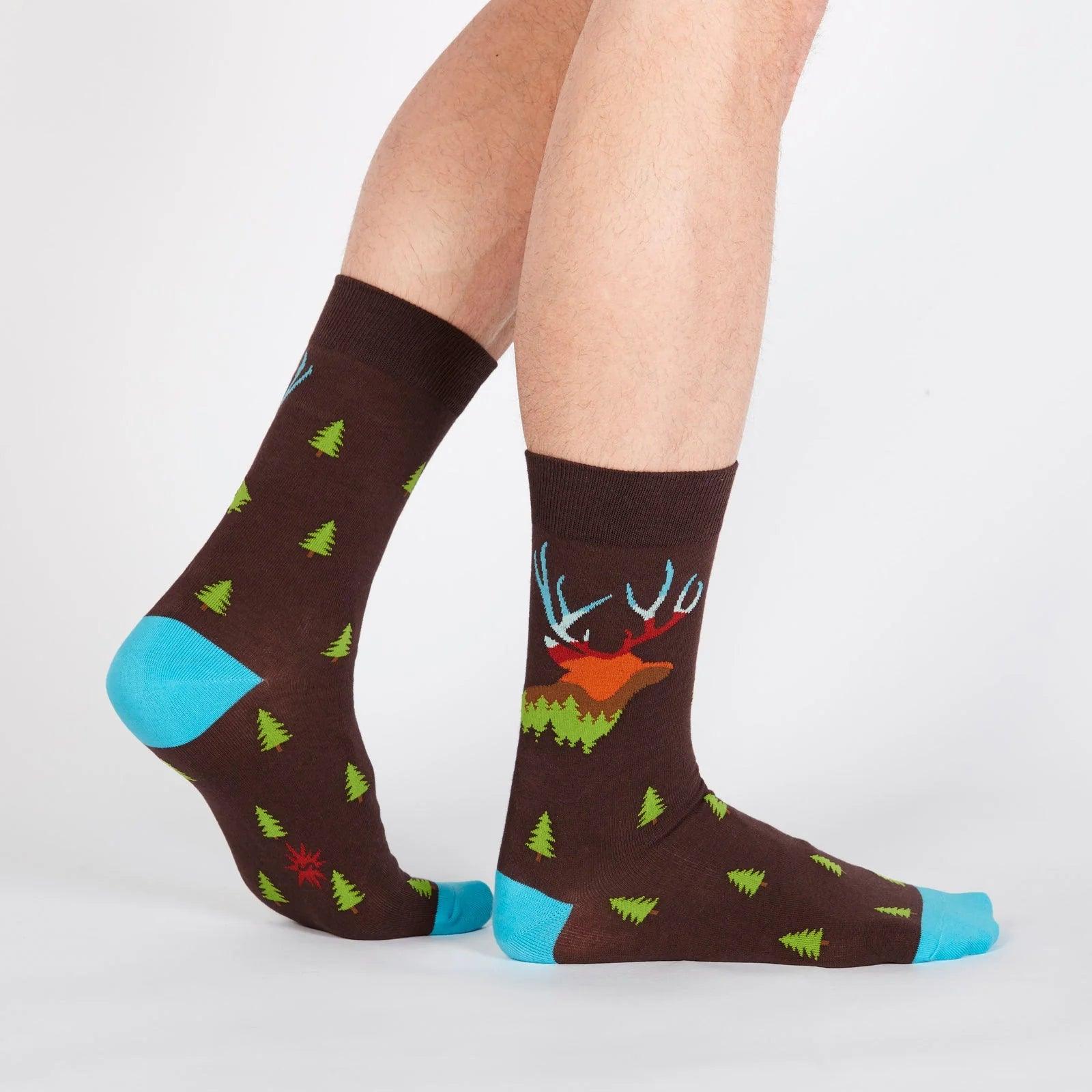 This stag silhouette is filled with the beautiful landscape that dew-covered camp mornings are made of! The nature-filled sock just makes you want to turn off your computer and walk into the woods, never coming back again. Well, for the days you can't just run into the wild, wear these crew socks to work. And hey, you can wear them in the great outdoors too; the deer will appreciate the socks just as much as your coworkers.